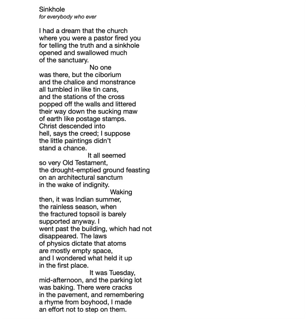 A poem from a friend, brought about by the crack investigators at Apostles Anglican Church in Knoxville.